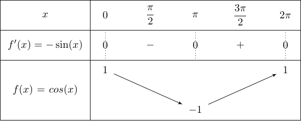 \tkzTabVal {2}{3}{0.5}{$\dfrac{3\pi}{2}$}{$0$}